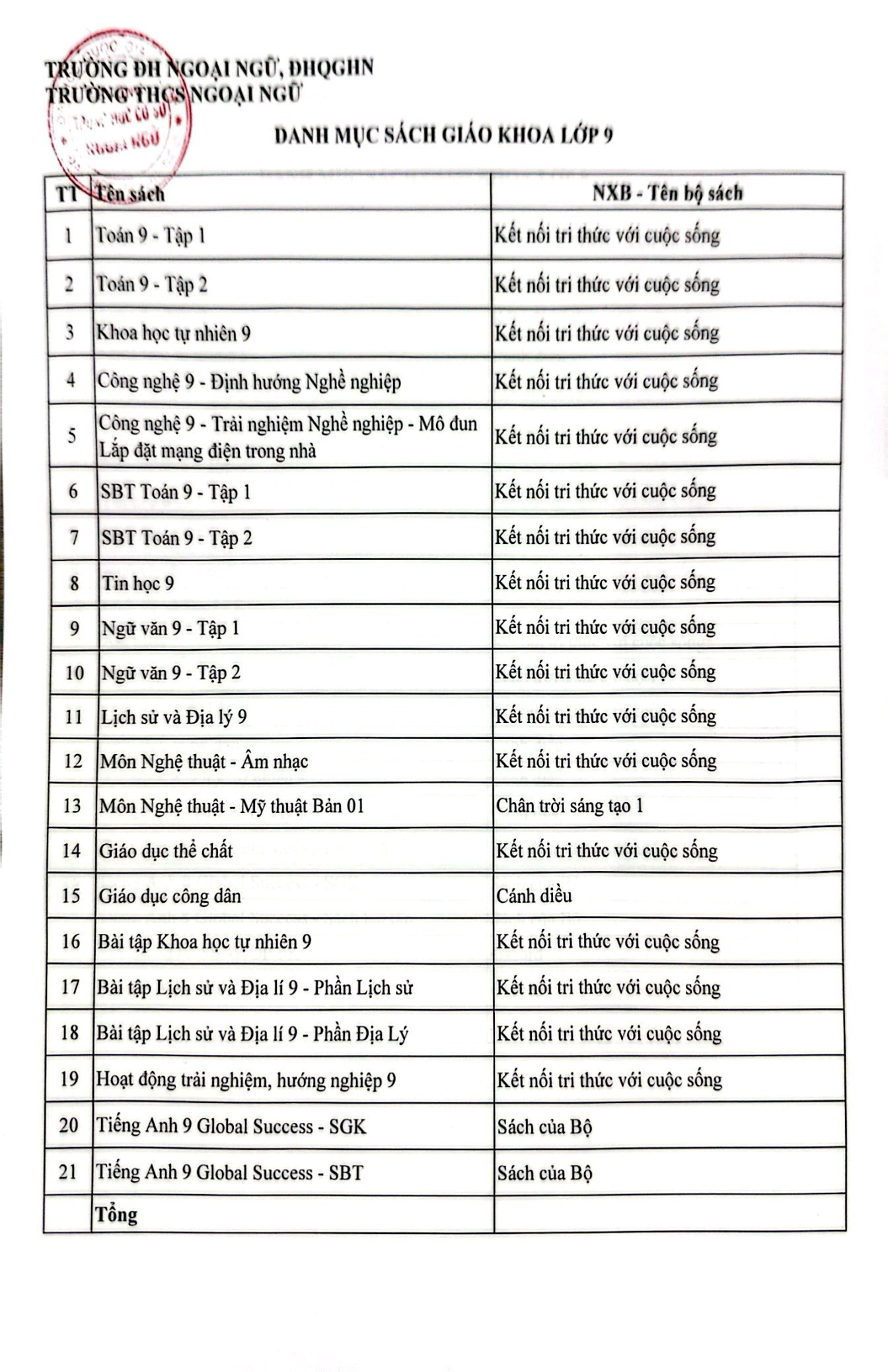 Danh mục sách giáo khoa chi tiết được đăng tải dưới đây. Phụ huynh và học sinh vui lòng theo dõi để chuẩn bị đầy đủ trước khi năm học mới bắt đầu.