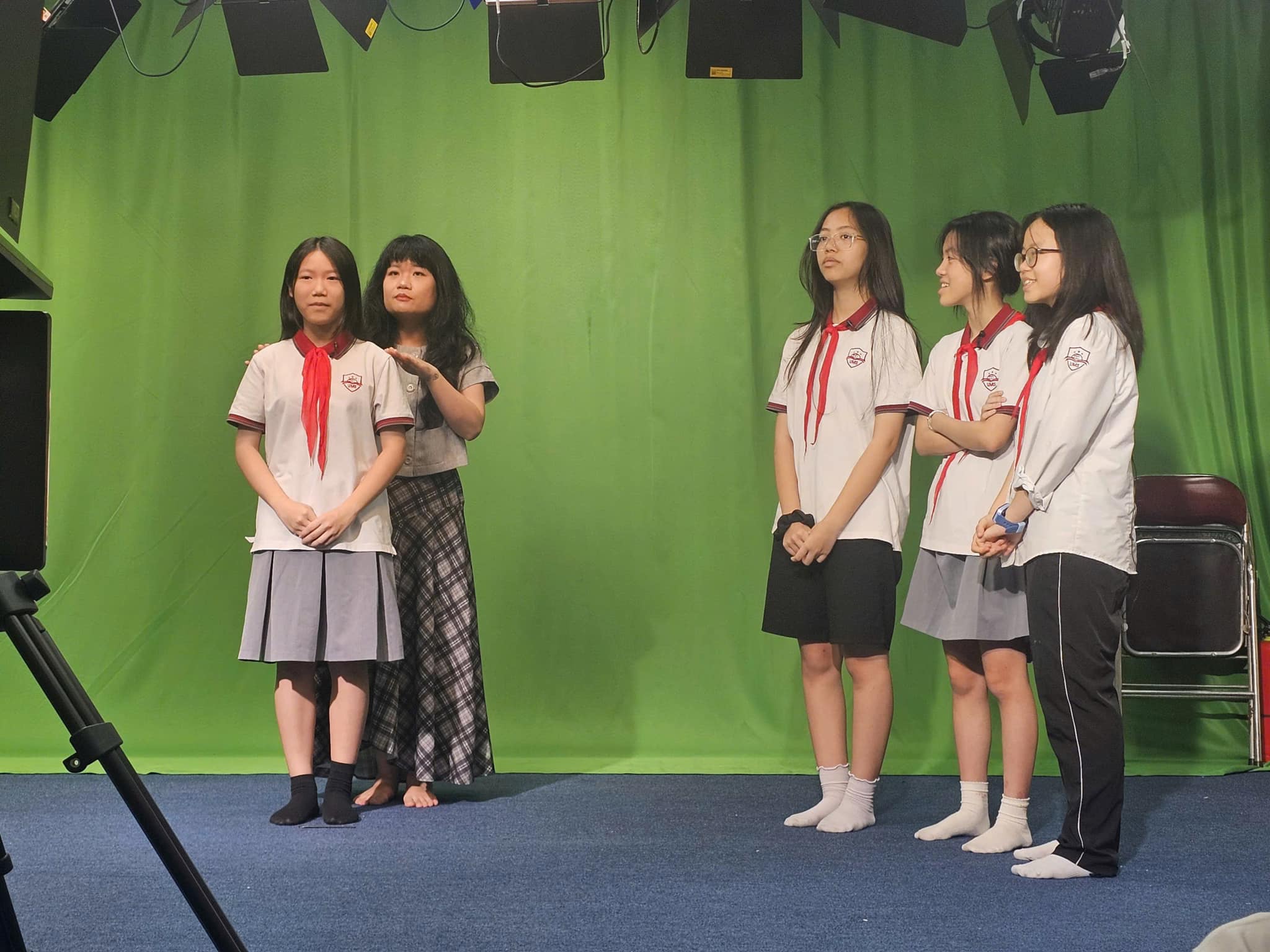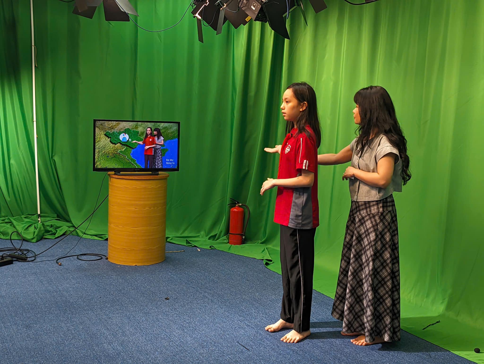 Sau chuỗi buổi học lý thuyết về kỹ năng dẫn chương trình, hôm nay các bạn học sinh đã chính thức bước vào chặng “thực chiến” đầy hào hứng trong chương trình MC Thời tiết.