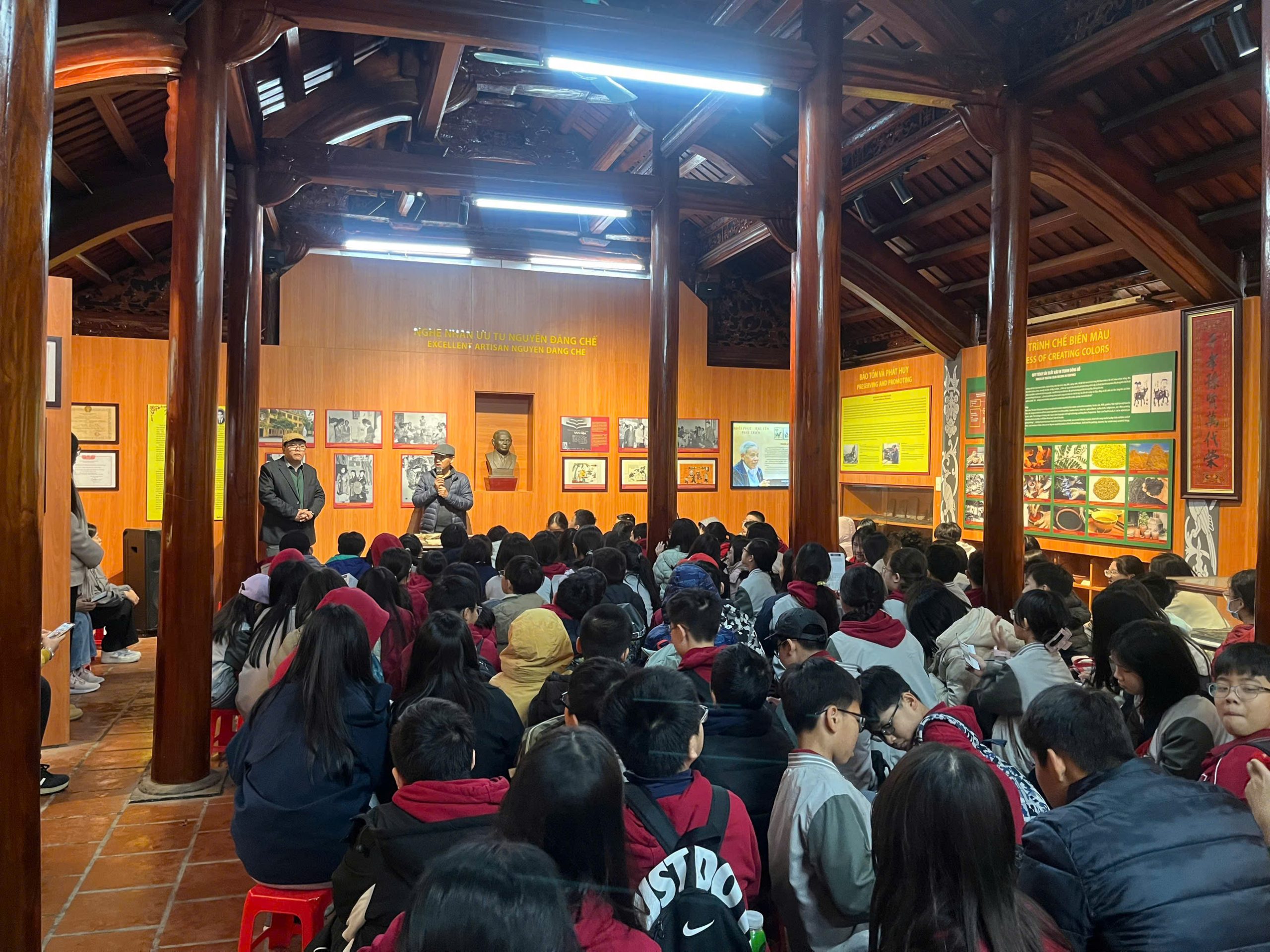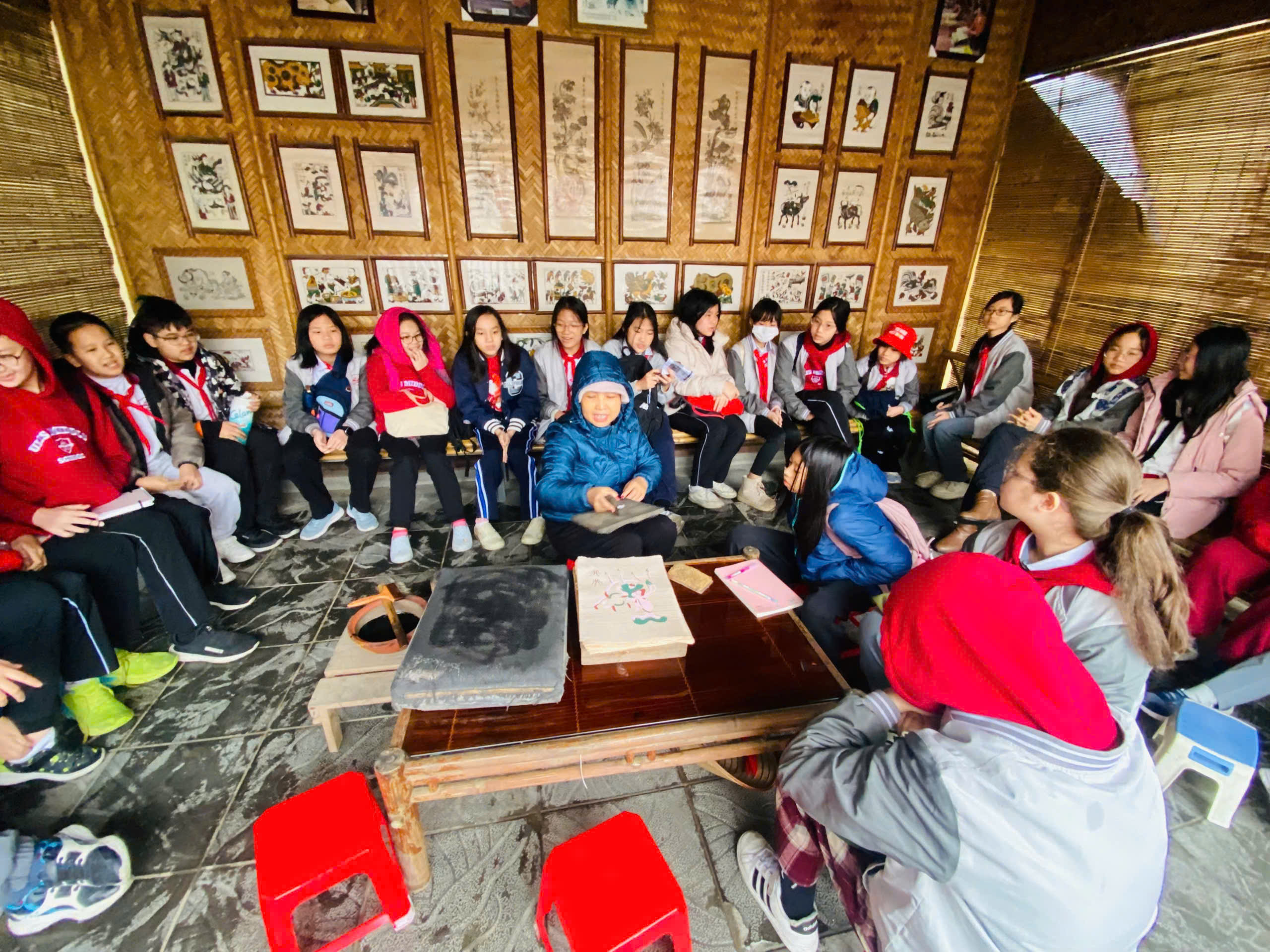Tại Trung tâm văn hóa tranh Đông Hồ của nghệ nhân Nguyễn Đăng Chế, học sinh được lắng nghe câu chuyện về lịch sử hình thành và phát triển của tranh dân gian Đông Hồ – dòng tranh gắn liền với đời sống tinh thần của người Việt mỗi dịp Tết đến xuân về.