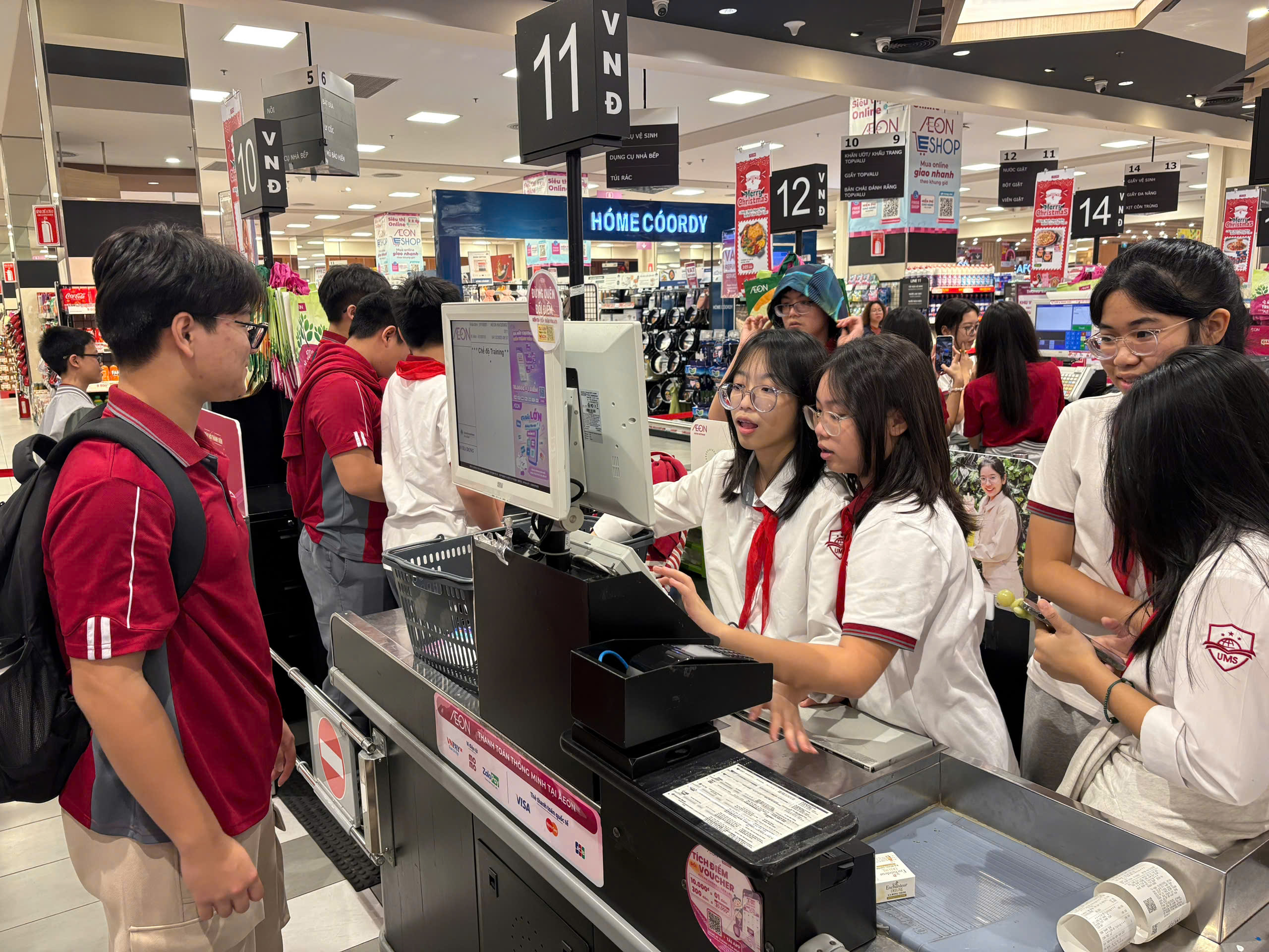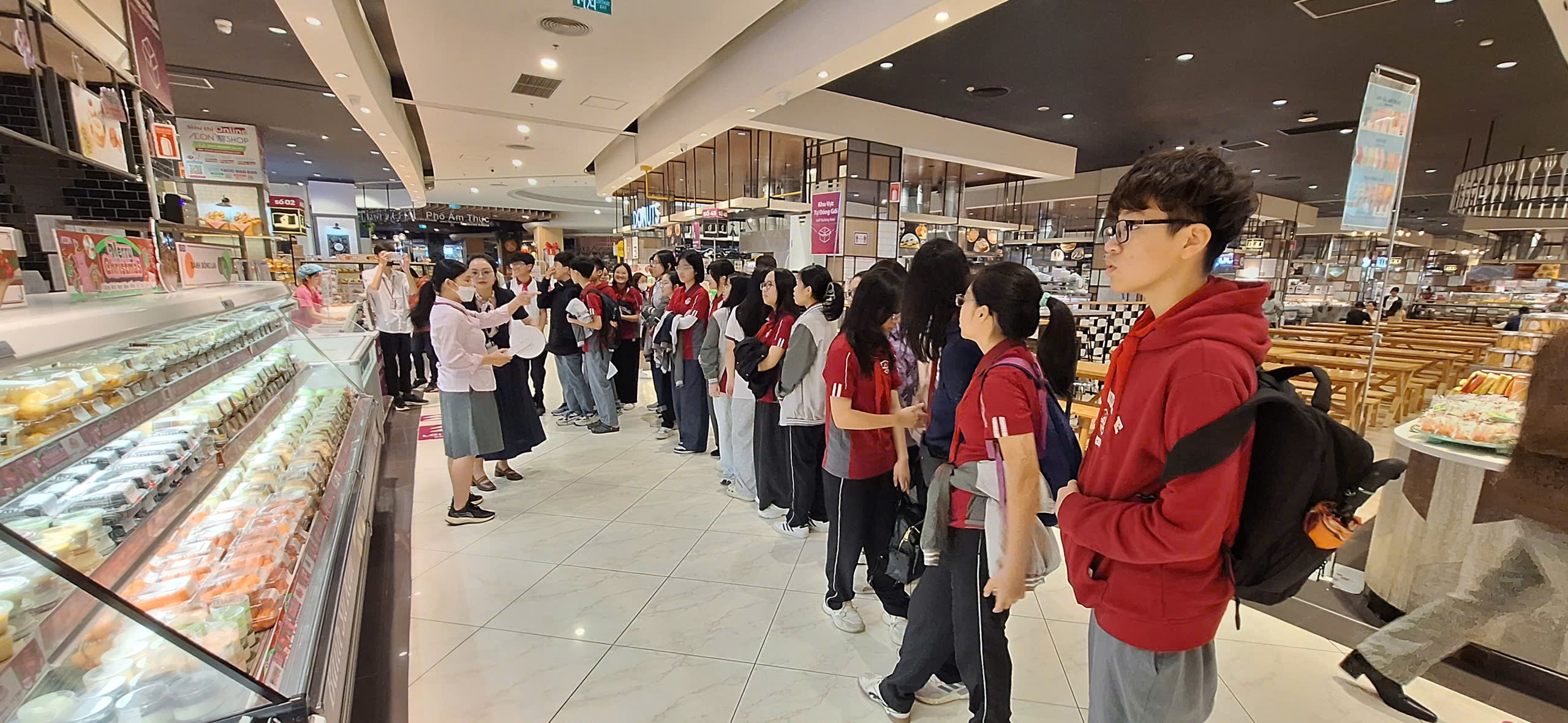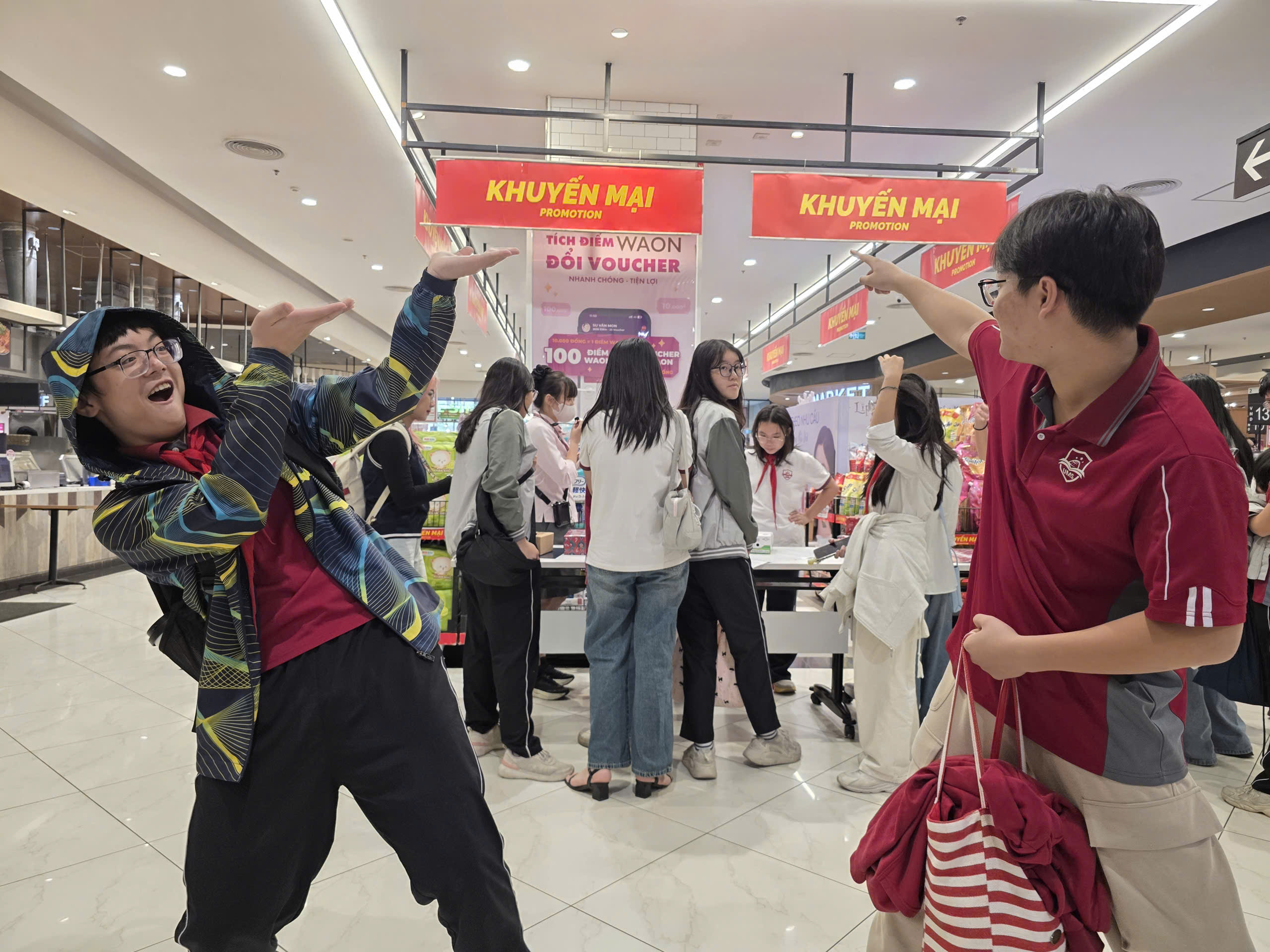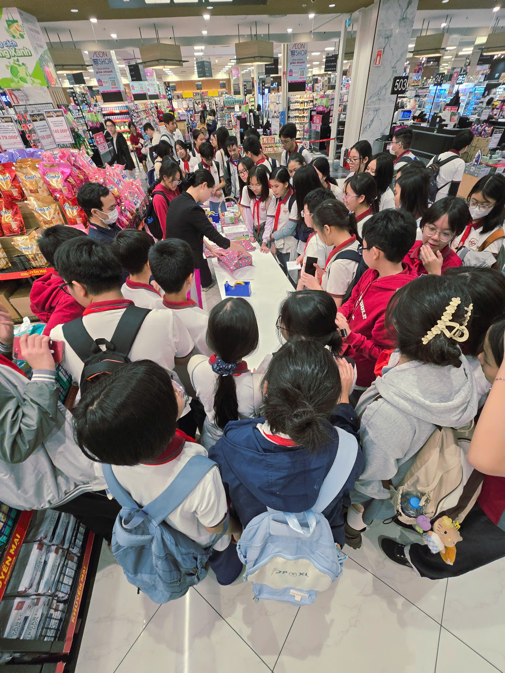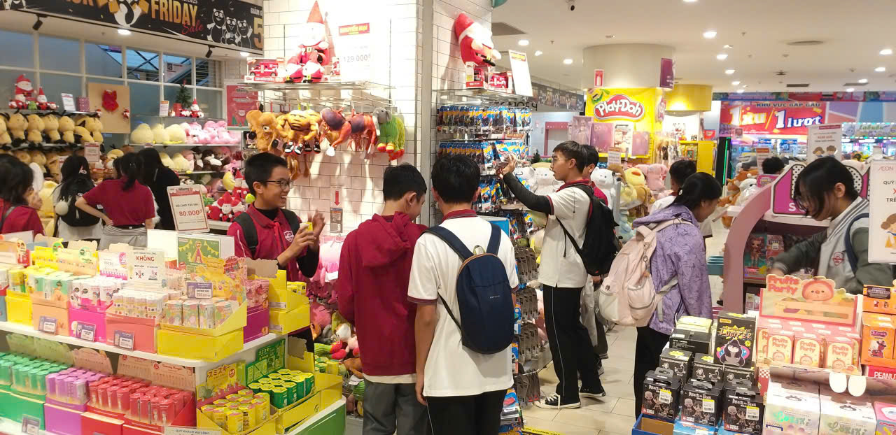 Sau bữa trưa, năng lượng được nạp đầy, các nhóm học sinh bắt đầu tỏa đi khắp khu siêu thị AEON để tiếp tục hành trình khám phá của riêng mình.