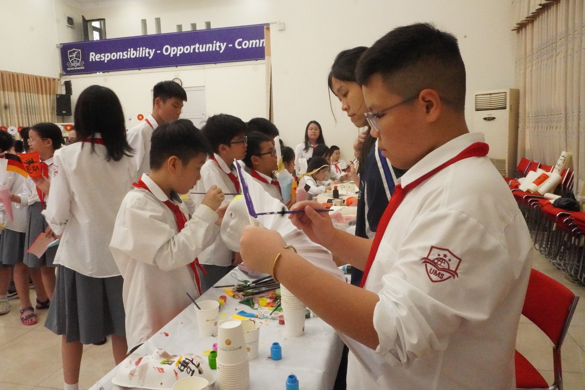 Các em được thực hành ngôn ngữ, trải nghiệm văn hoá đặc trưng, thưởng thức ẩm thực truyền thống đến từ 5 quốc gia: Đức – Trung – Nhật – Hàn – Pháp. Mỗi gian hàng là một “cánh cửa” mở ra thế giới mới, giúp các em không chỉ học hỏi kiến thức mà còn cảm nhận được vẻ đẹp đa dạng, phong phú của các nền văn hoá.