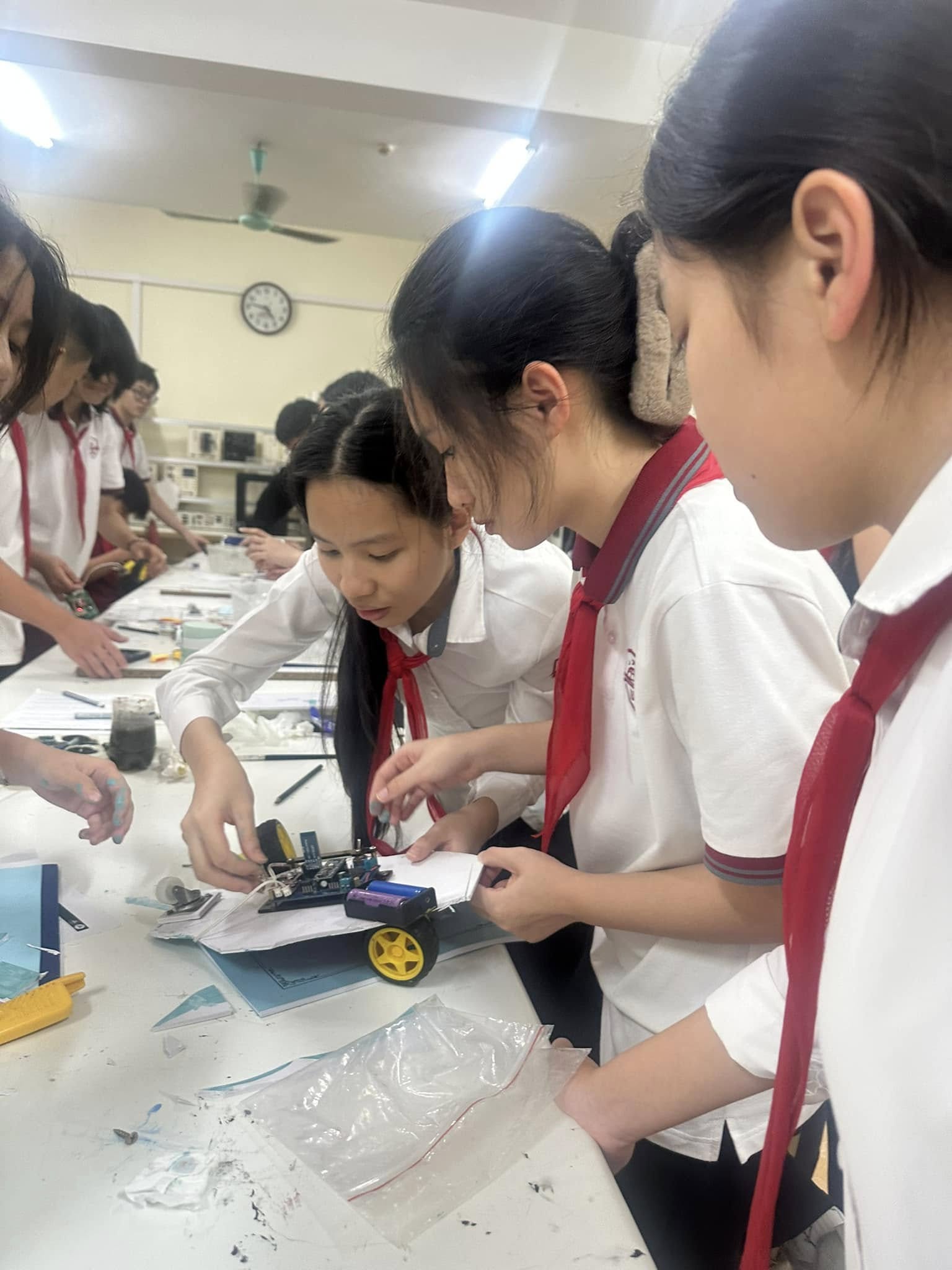 Hôm nay, học sinh khối 9 trường THCS Ngoại ngữ đã có một buổi trải nghiệm STEM đầy hào hứng với hoạt động lắp ráp và lập trình robot điều khiển bằng điện thoại.